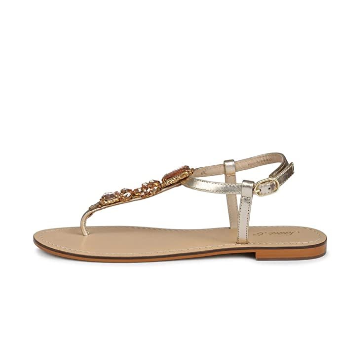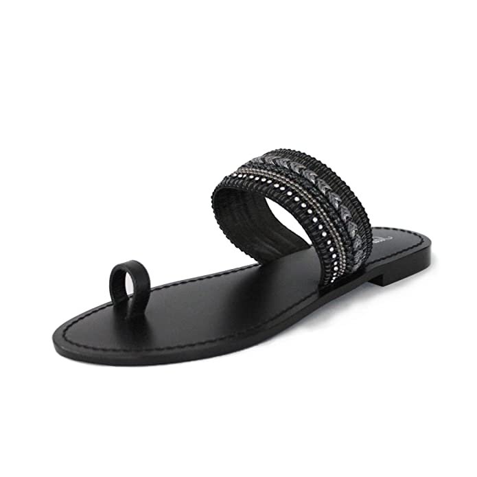 Catwalk womens Boho Beaded T-strap Flats Sandal