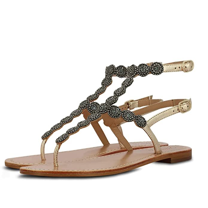 SaintG Women Platin Leather Handcrafted Embroidered Buckle Fastening Closure Flat Sandals…