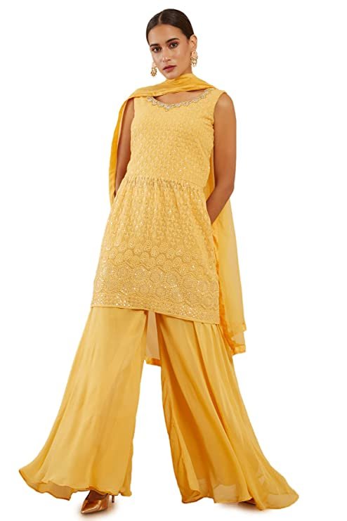 Ethnic Yard Women’s Embroidery Sequence work Gerogette Semi-Stitched Salwar Suit (SSEY -F1431_Yellow)