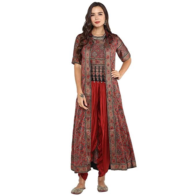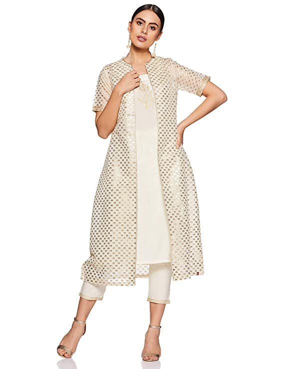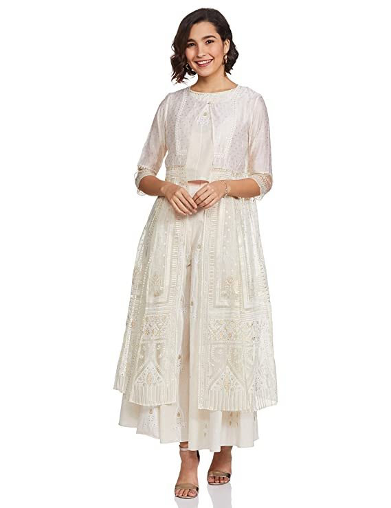 BIBA Womens Round Neck Printed Top Patiyala And Jacket Set