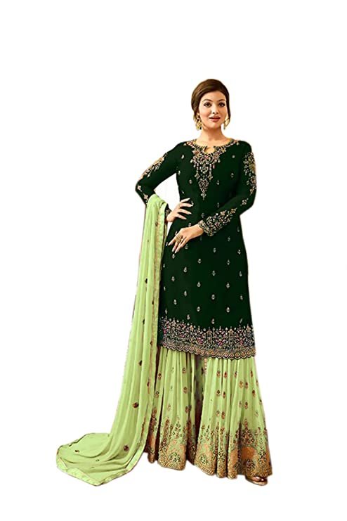 SHAFNUFAB® Women’s Georgette Semi Stitched Anarkali Salwar Suit (Wedding Dress and Salwar Suit_SF201178 Green Free Size)