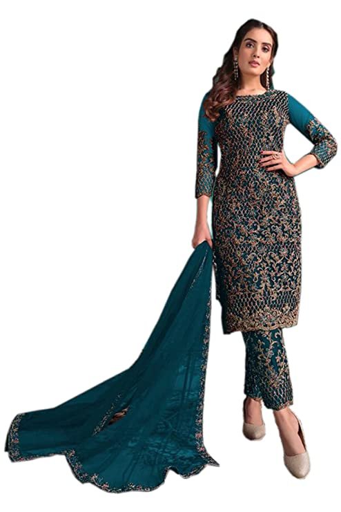 RUDRAPRAYAG Women’s Satin Georgette Embroidered Semi Stitched Salwar suit set free size
