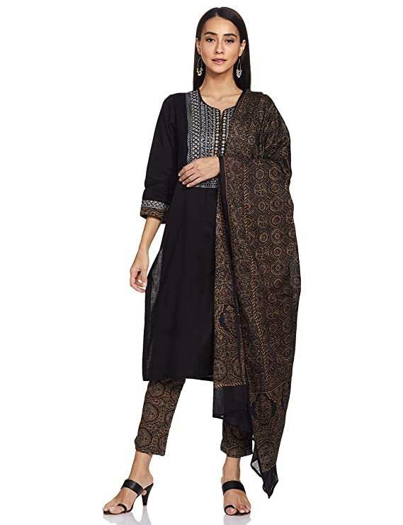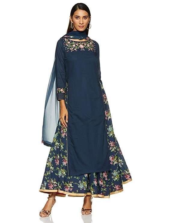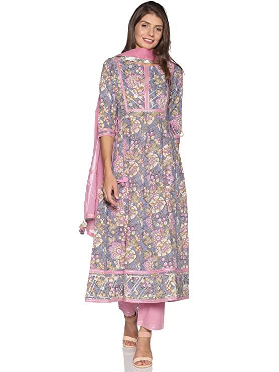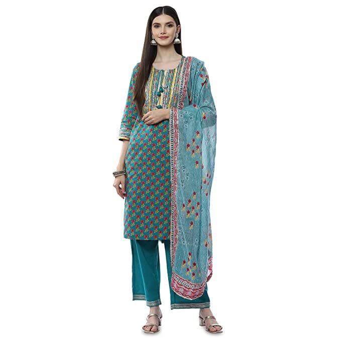 BIBA Women’s Cotton Blend Salwar Kurta Dupatta