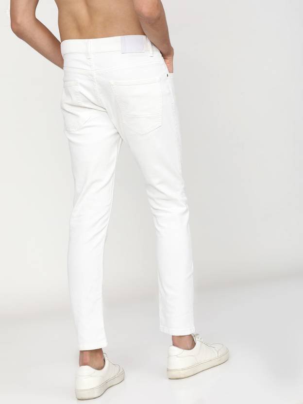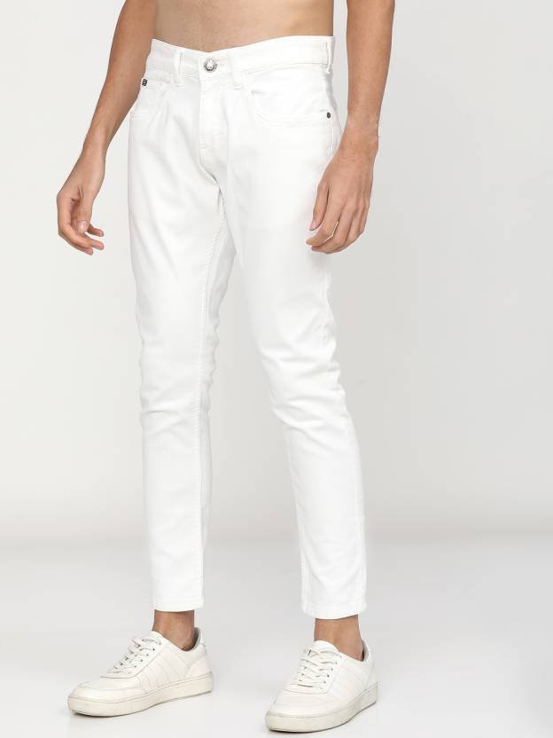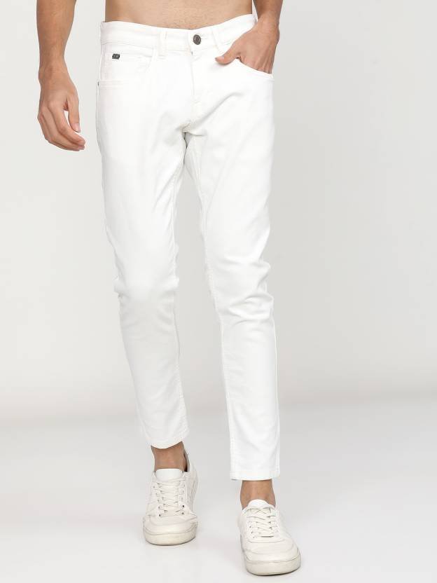 Tapered Fit Men White Jeans