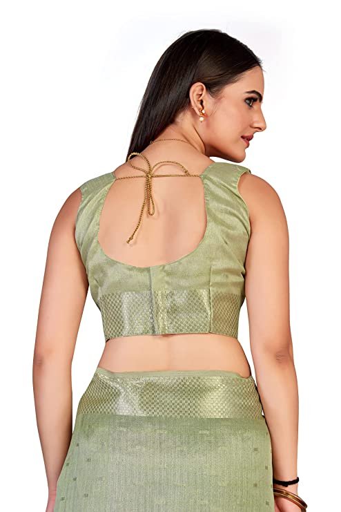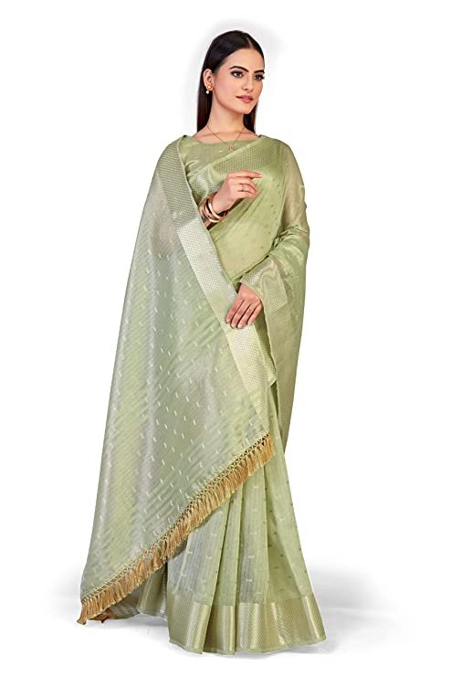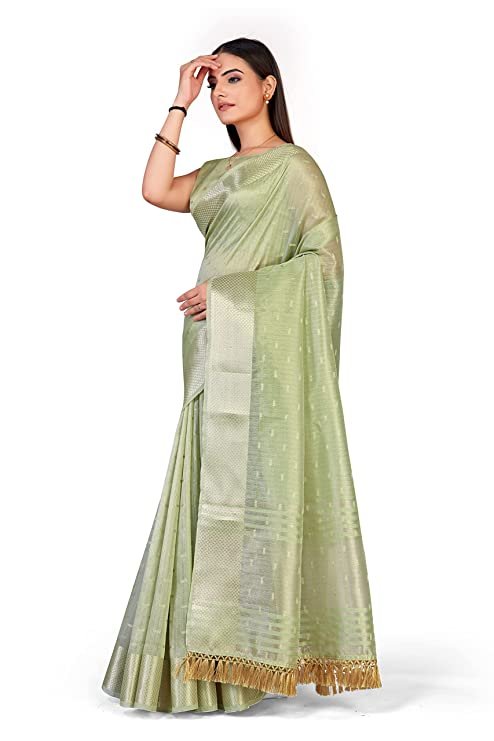 About this Item Saree Fabric: Chanderi Cotton Silk , Blouse Fabric : Chanderi Cotton Silk Saree Color: Light Green , Blouse Color: Light Green Saree Length: 5.5 Meter , Blouse Length: 0.8 Meter Saree comes with unstitched blouse piece,which is attached with end of the saree only. Buyer have to cut blouse part from the saree. Stiching service will not be available. There might be color variation due to screen resolution and digital photography Additional Information Item Weight400 g Item Dimensions LxWxH13 x 10 x 2 Centimeters Included ComponentsWith Blouse Piece