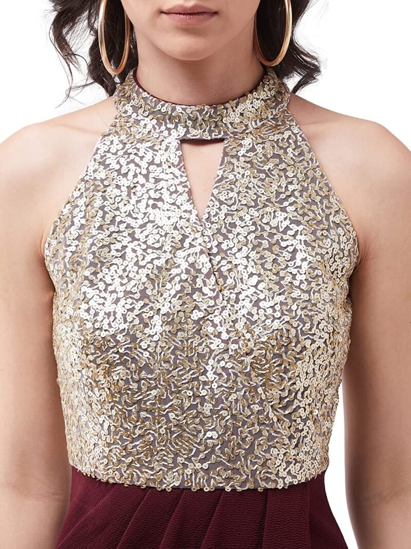 Be the first to review “Miss Chase Women’s Wine Halter Neck Sleeveless Solid Embellished Midi Dress” Cancel reply