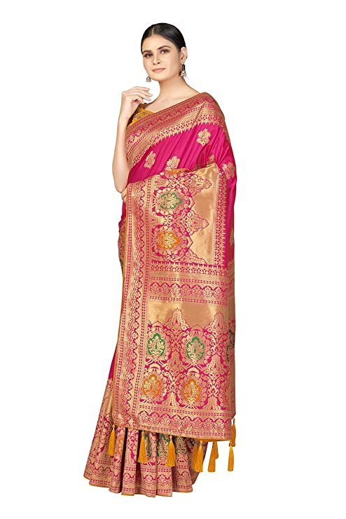 About this Item Saree Fabric: Silk blend Blouse Fabric : Silk Saree work :- Zari Woven,Blouse work :- Embroidered Saree Length 5.5 Mtr + 0.80 Cm Blouse Additional Information Item Weight1 kg 100 g Item Dimensions LxWxH38.1 x 25.4 x 5.1 Centimeters Net Quantity1.00 unit Included ComponentsWith Blouse Piece Generic NameSilk saree