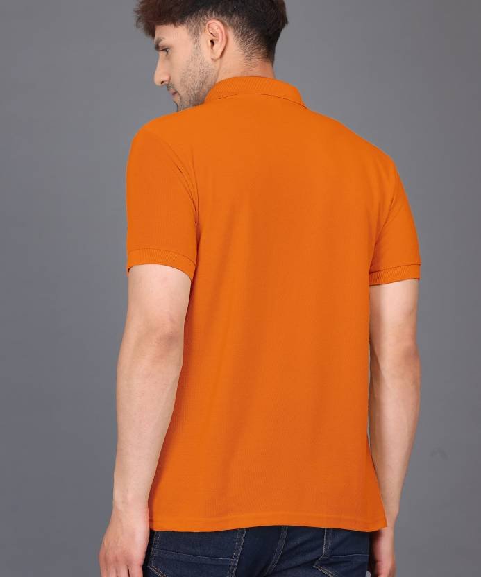 Solid Men Polo Neck Orange T-Shirt