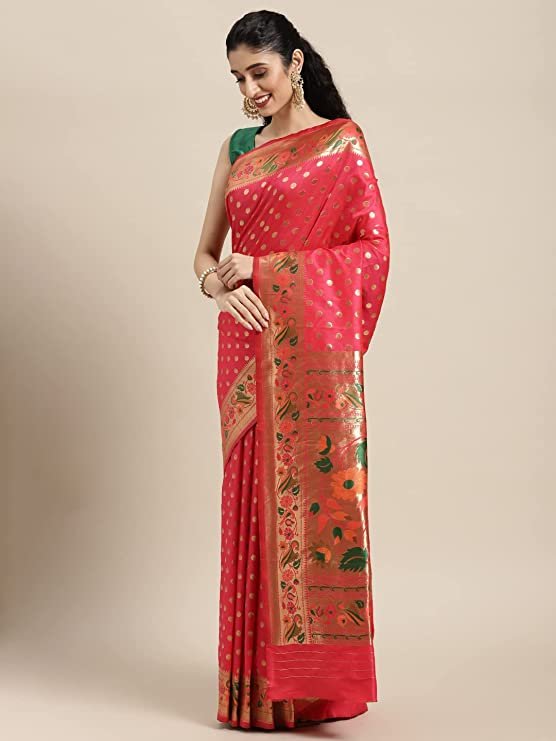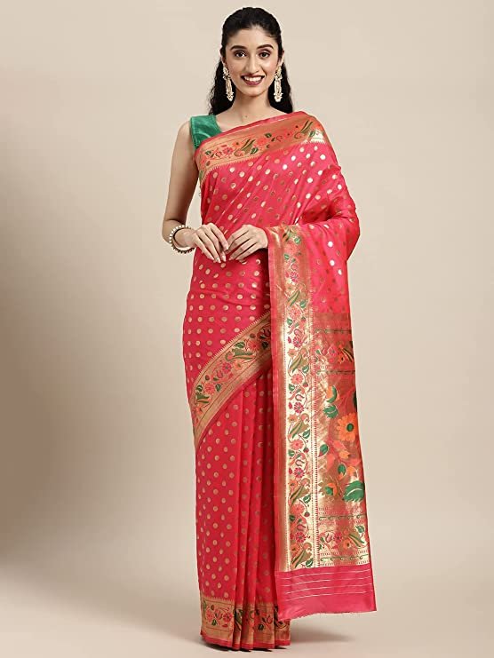 About this Item Saree Fabric : Art Silk || Saree Length :6.3 Mtrs Including Blouse (5.5 mts+ 80 cm Blouse ). Blouse Fabric : Art Silk|| Blouse Type & Length :80.cm Unstiched Blouse (Attached At the end Of Saree has to be cut from end of saree, no marking given to cut). Work Type : Woven Zari design All over || Soft Finished ||Comfortable wear. Occasion :- Can use at Party, Wedding,Festivals and Traditional Ceremonies. Product Color May Slightly Vary Due to Photographic Lighting Sources or Your Monitor Settings. Additional Information Item Weight500 g Item Dimensions LxWxH40 x 25 x 3 Centimeters Net Quantity1.00 count Included ComponentsWith Blouse Piece