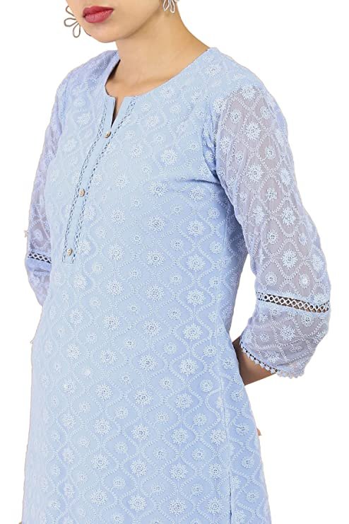 Product Details Material CompositionGeorgette StyleStraight Neck StyleRound Neck PatternSolid Country of OriginIndia