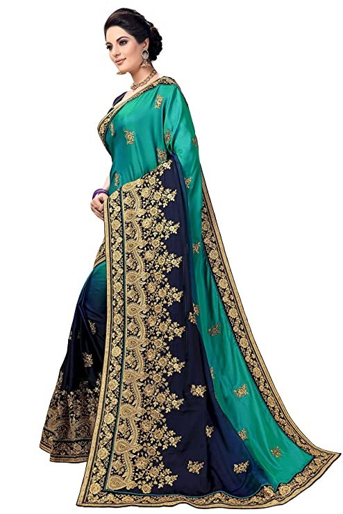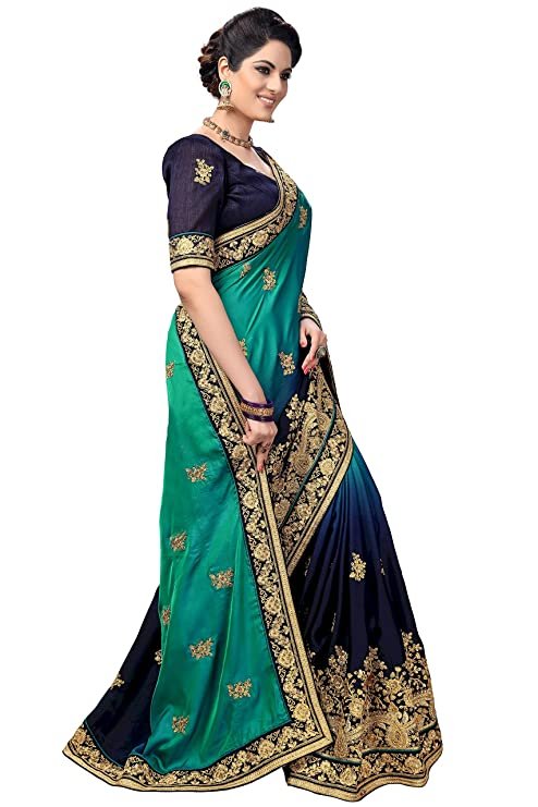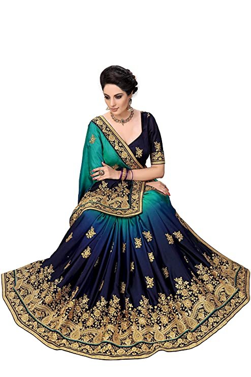 About this Item Sarvadarshi Fashion Womens Barfi Silk Heavy lace Embroidery work wedding Saree With blouse piece Fabric: Saree: Barfi Silk || Blouse: Dupion Silk Color: Saree: Turquoise, Blue || Blouse: Navy Blue Work Type: Two Shade Heavy Embroidery, Stone Work Saree Package Contents: 1 Saree with Unstitched Blouse Piece Additional Information Item Weight1 kg 110 g Included ComponentsWith Blouse Piece Generic NameEmbroidery Saree For Wedding Function