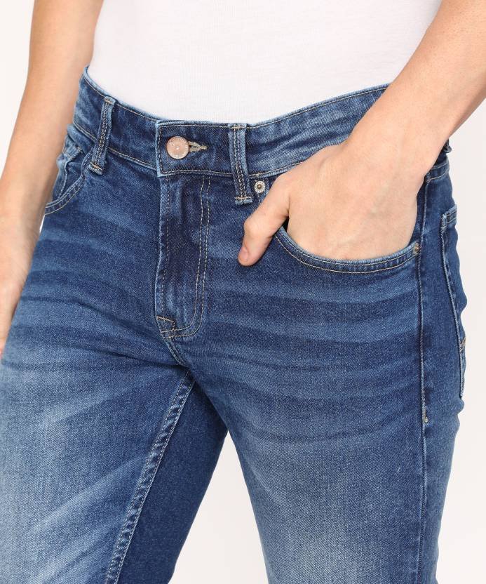 Product Details Style Code ECSKN-01BB-033 Ideal For Men Suitable For Western Wear Pack Of 1 Pocket Type Coin Pocket, Curved Pocket, Patch Pocket Reversible No Sales Package 1 Jean Closure Button Fabric Cotton Blend Faded Light Fade Rise Low Rise Distressed Clean Look Stretchable Yes Color Dark Blue Fly Zipper Fabric Care Do Not Tumble Dry || Wash With Like Colors || Do Not Bleach || Do Not Wring
