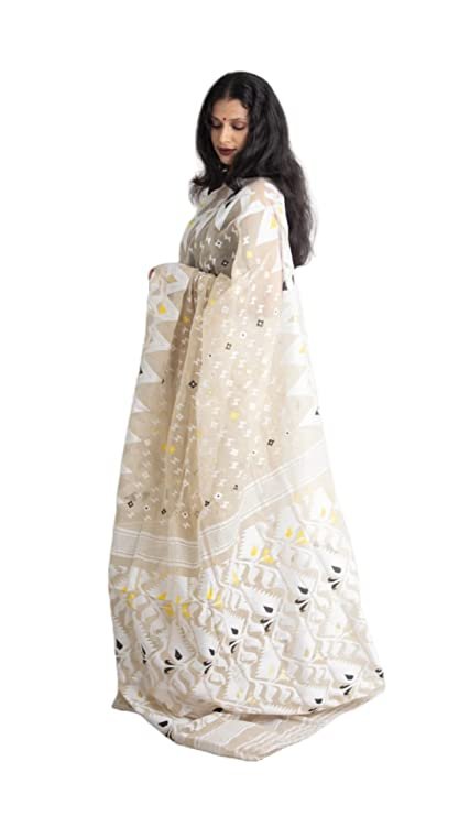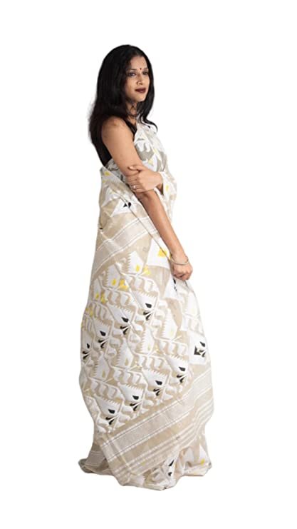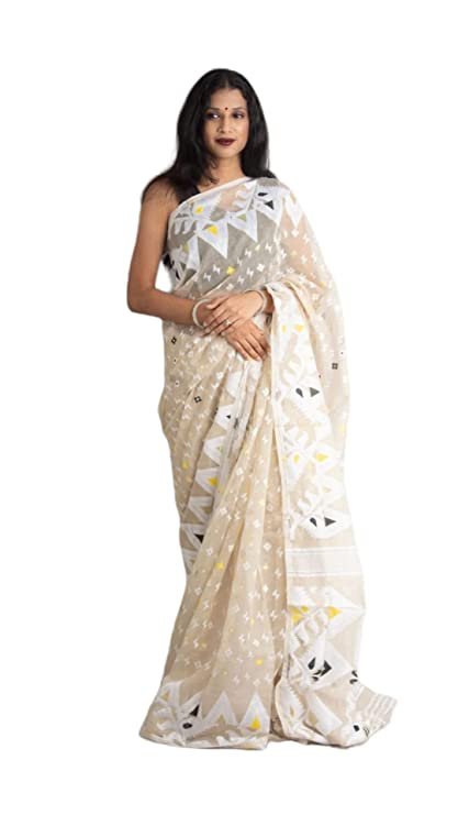 About this Item Material: Cotton Blend Wash Care: Hand Wash Weave Type: New Mahi Soft Dhakai Jamdani, Included Components: Saree without Blouse Piece Eye catching colors occasion party, festive, wedding wear best gift for your loved ones Additional Information Included ComponentsWithout Blouse Piece