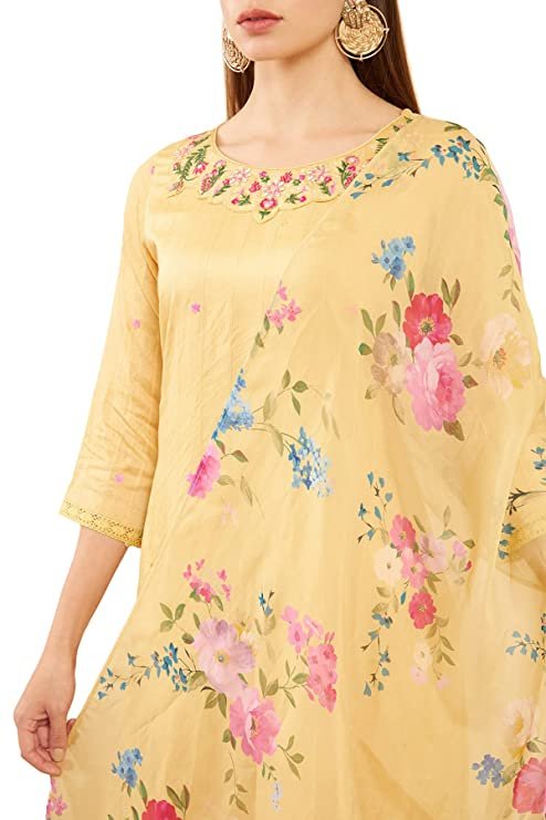 About this Item Round Neck Quarter Sleeve Printed With Culottes & Dupatta